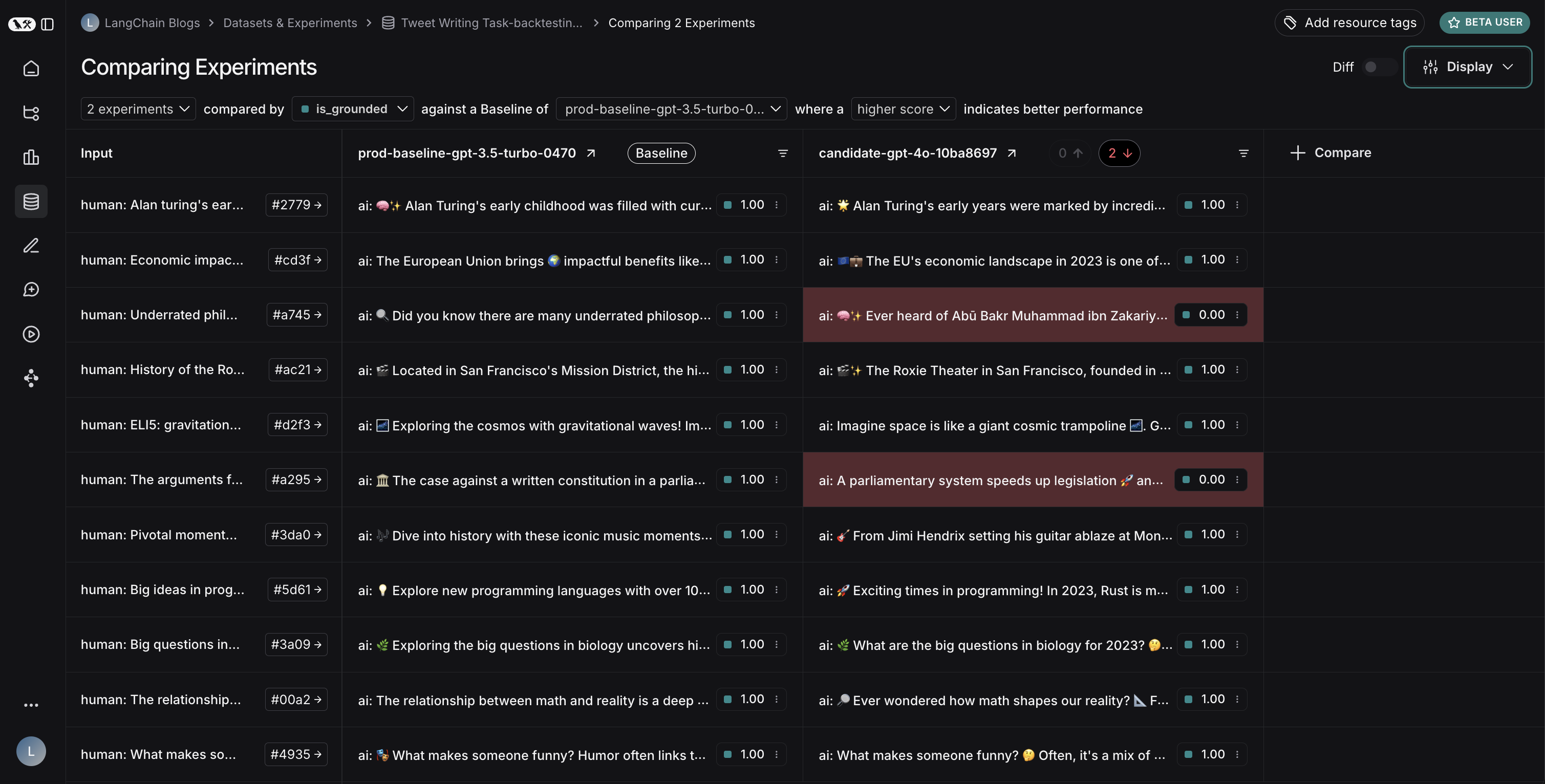 This backtesting exercise revealed that while GPT-4o is generally considered a more capable model, simply upgrading to it wouldn’t improve our tweet-writer. To effectively use GPT-4o, we would need to: